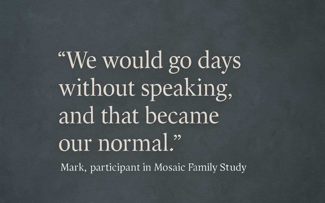 “We would go days without speaking, and that became our normal.” – Mark, participant in Mosaic Family Study