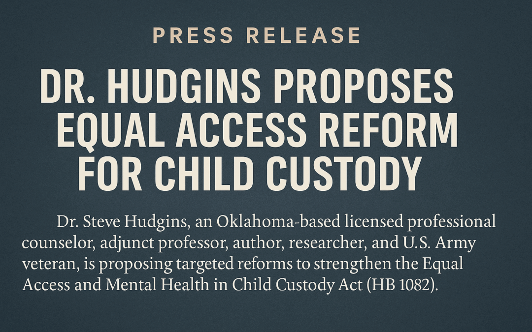 Dr. Steve Hudgins, an Oklahoma-based licensed professional counselor, adjunct professor, author, researcher, and U.S. Army veteran, is proposing targeted reforms to strengthen the Equal Access and Mental Health in Child Custody Act (HB 1082). Dr. Hudgins has conferred with Representative Mark Tedford to address these concerns and advocate for stronger protections that preserve children’s emotional safety and parental attachment.